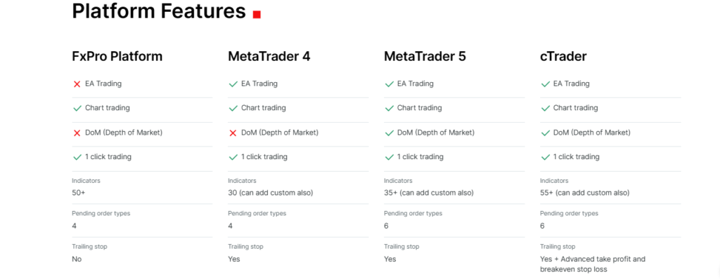 But, MT4 is comparatively slower than FxPro cTrader. So if you want faster execution of the trade, go for FxPro MT5 or cTrader.